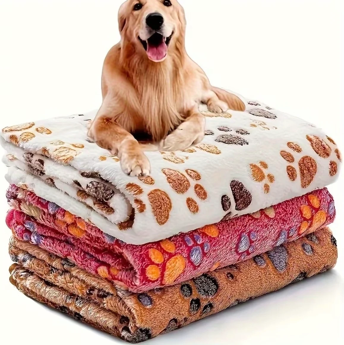 Super Soft Fluffy Premium Fleece Pet Blanket Flannel Throw for Dog Puppy Cat Paw Brown/Pink/White