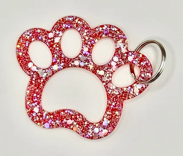 Acrylic Red Hollow Paw Print Key Chain quantity