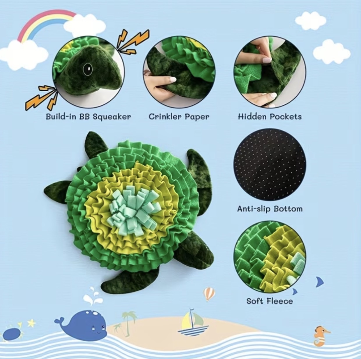 Interactive Feeding Puzzle Mat for Dogs, Designed for Sniffing Activities. This Slow Feeder Is Suitable for Puppies, Cats, And Rabbits, Promoting Stress Relief, Foraging Skills, And Mental Stimulation. Features an Adorable Turtle Design