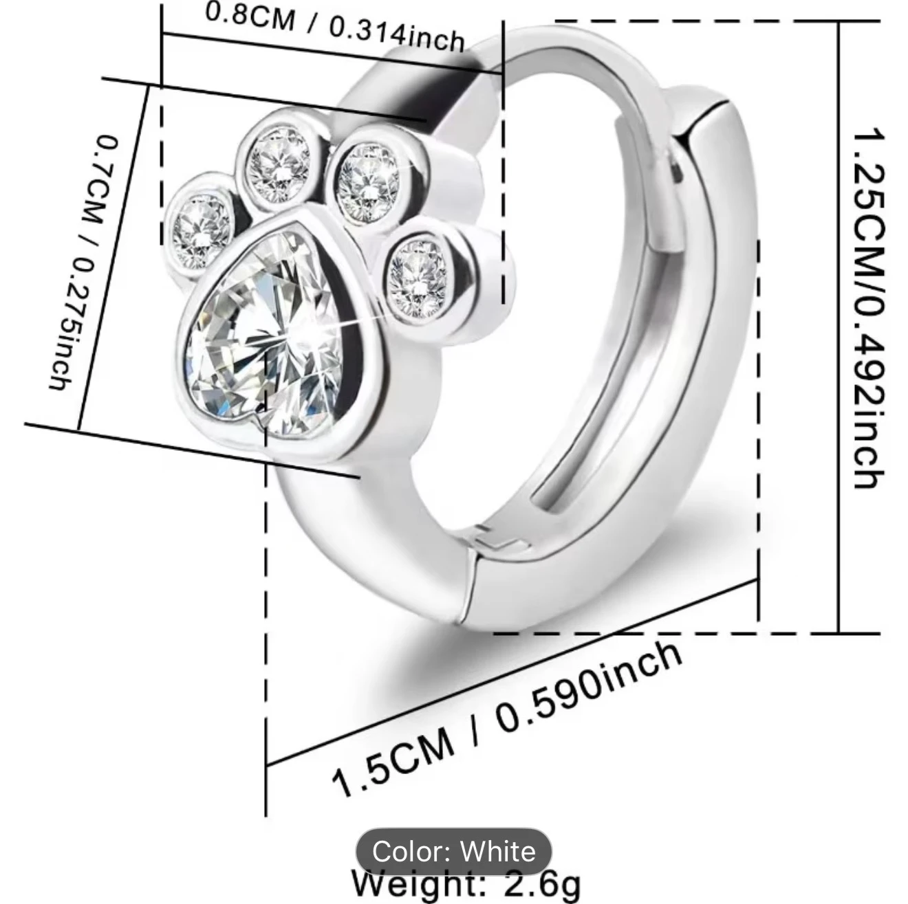 1 Pair Cubic Small Hoop Earrings – CZ Cat Dog Paw Print Hoop Huggies Earrings Sterling Silver Hypoallergenic Cute Cartilage Earrings for Women
