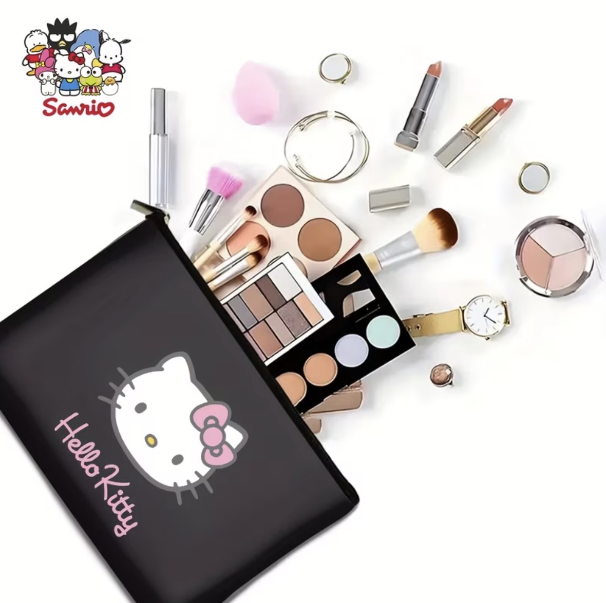 The Minimalist Charm of Sanrio’S Classic Character Hello Kitty Is Showcased in This Versatile Travel Makeup Bag, Featuring a Durable Zipper And Polyester Storage Pouch. It Is Machine Washable And Designed for Simplicity