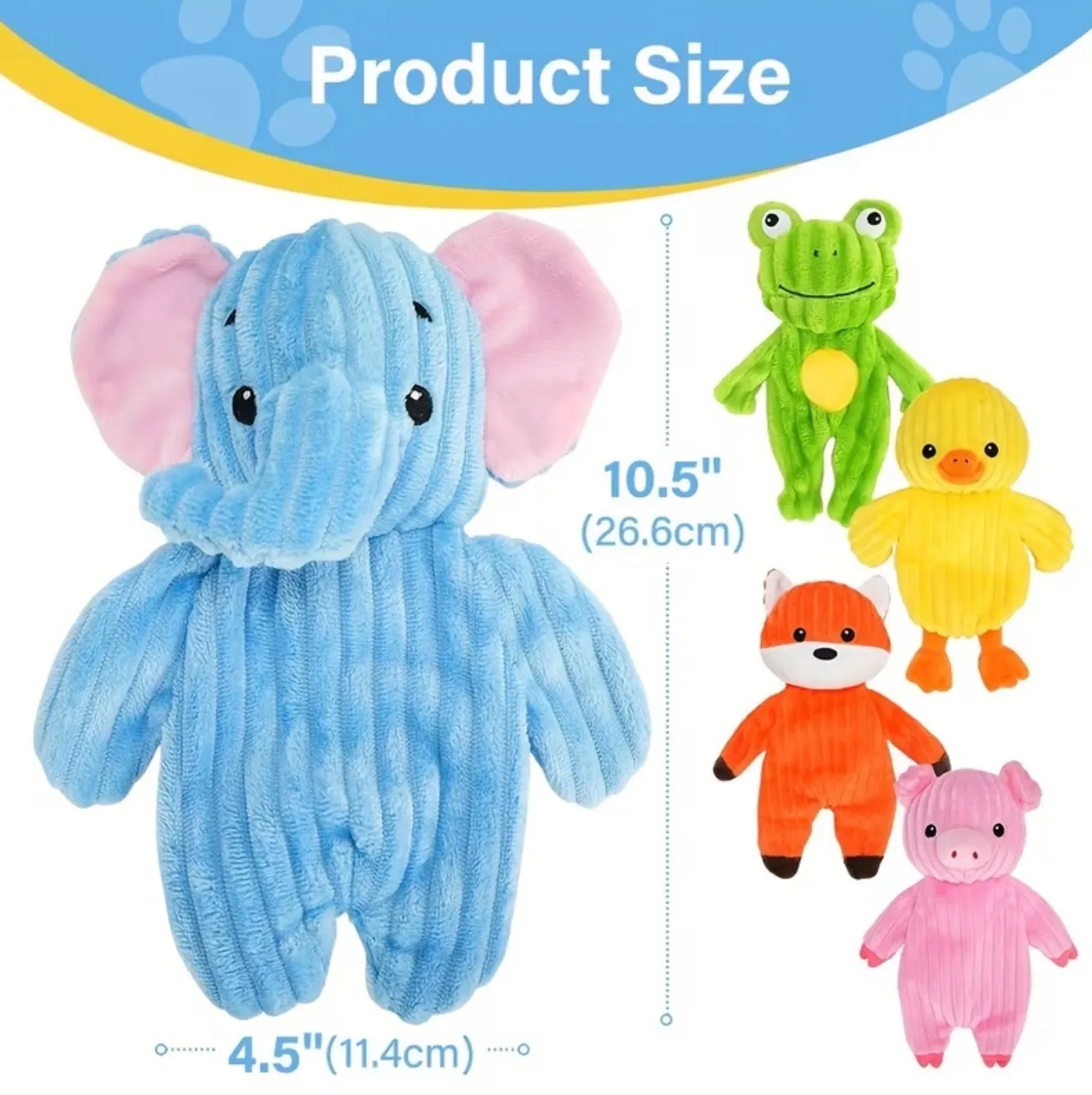Plush Squeaky Toys, Crinkle Paper Material Inside, Assortment Value Bundle Animal Pet Toy for Small Medium Large Dogs, Stuffed Puppy Chew Toy, Cute Dog Gift Toys, No Stuffing Bodies, Dog