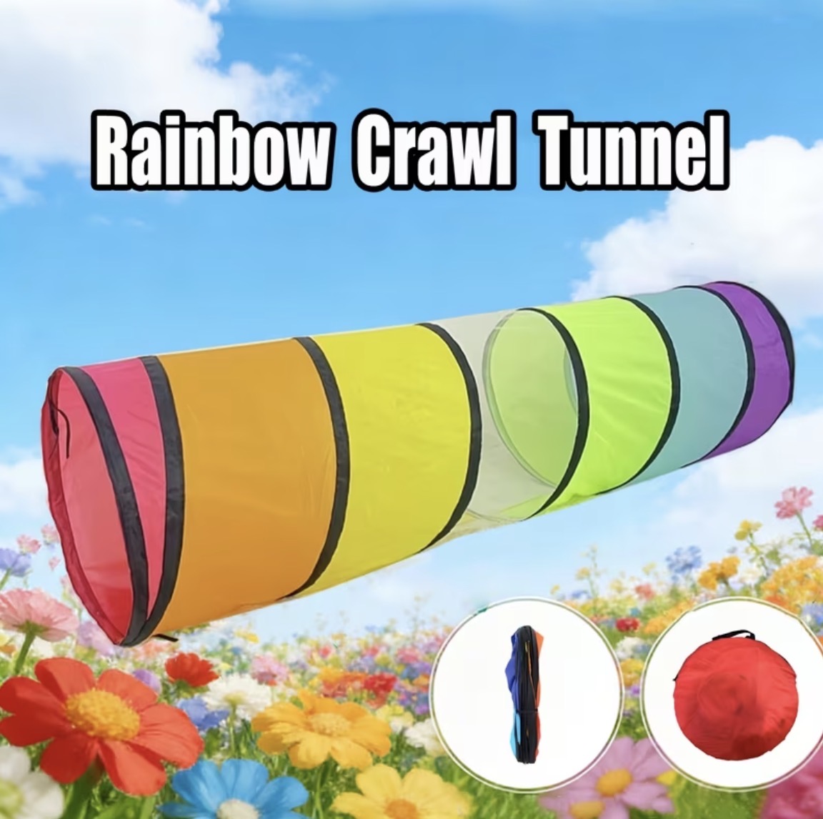Rainbow Crawl Tunnel | Colorful Pop-Up Play Toy with Breathable Mesh, Foldable for Kids & Pets, Polyester Fiber, Mixed Color