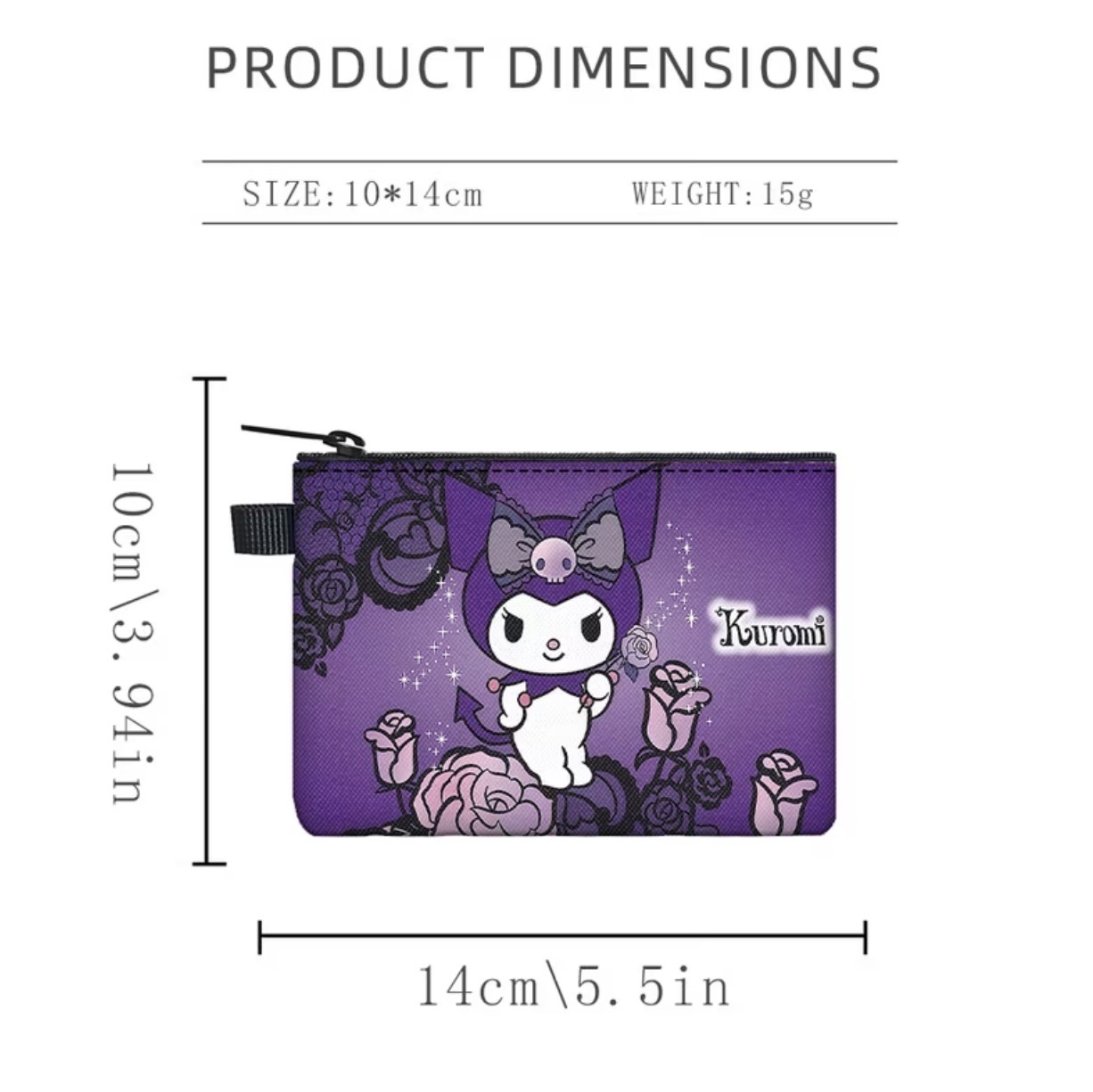 Sanrio Trendy Kuromi Design Lightweight Zipper Coin Purse – Polyester Coin Purse/Storage Bag, Perfect Gift Choice for Holidays, Birthdays, Christmas, and Parties