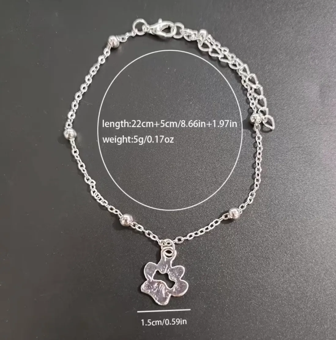 Sterling 925 Silver Bohemian Style Anklet with Paw Print Charm Adjustable Chain Jewelry