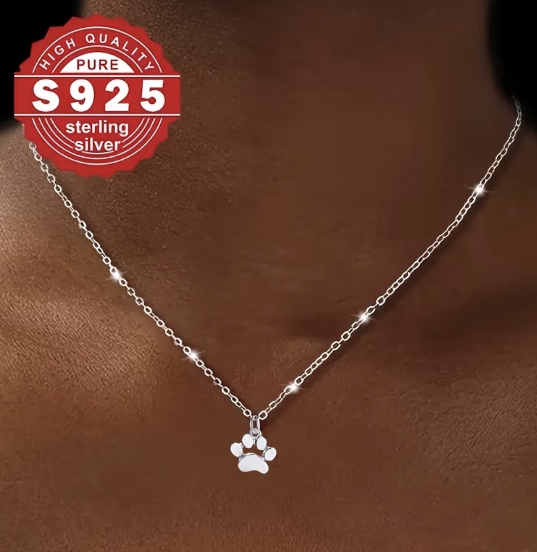 A Pendant Necklace Featuring a Paw Print Design Made of 925 Sterling Silver, Characterized by Its Simplicity And Charm, Ideal for Animal Enthusiasts. It Boasts a Distinctive Style, Is Safe for Sensitive Skin, Suitable for Everyday Use